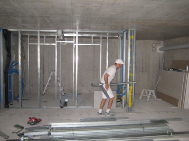 Die Trennwände erlauben eine einfache und schnelle Montage, da sie aus Metallprofilen und Gipskartonpaltten erstellt werden. Dadurch entfallen Trocknungszeiten, so dass Ihr Bauvorhaben schnell realisiert werden kann. Die Leichtbauwände prägen sich vor allem durch geringes Gewicht, gutem Schall- / Feuerschutz und verschaffen ein angenehmes Raumklima. Die erforderlichen Installationen wie elektrische und sanitäre Leitungen, Lüftungskanäle, Beleuchtungskörper können problemlos in der Wand montiert werden. Wir liefern und montieren nach Bedarf auch Metalltürzargen und andere Bauteile.